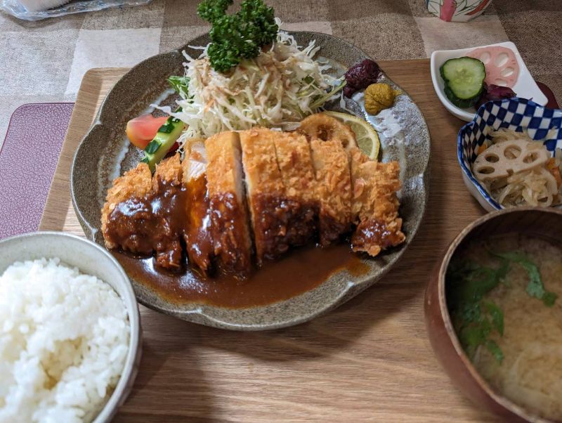 デミカツ御膳はこんな感じ。なかなかボリューミーである。こちらも一口もらったが柔らかく、ソースも美味しい。これも美味しいのだが、オムライスは腰が抜けるほどうまかったので、オムライスで良かったのである。